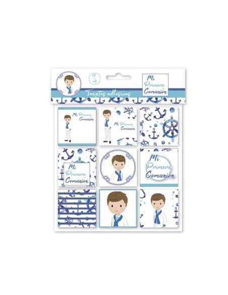 TARJETAS ADHESIVAS PRIMERA COMUNION NIÑO 9 UDS